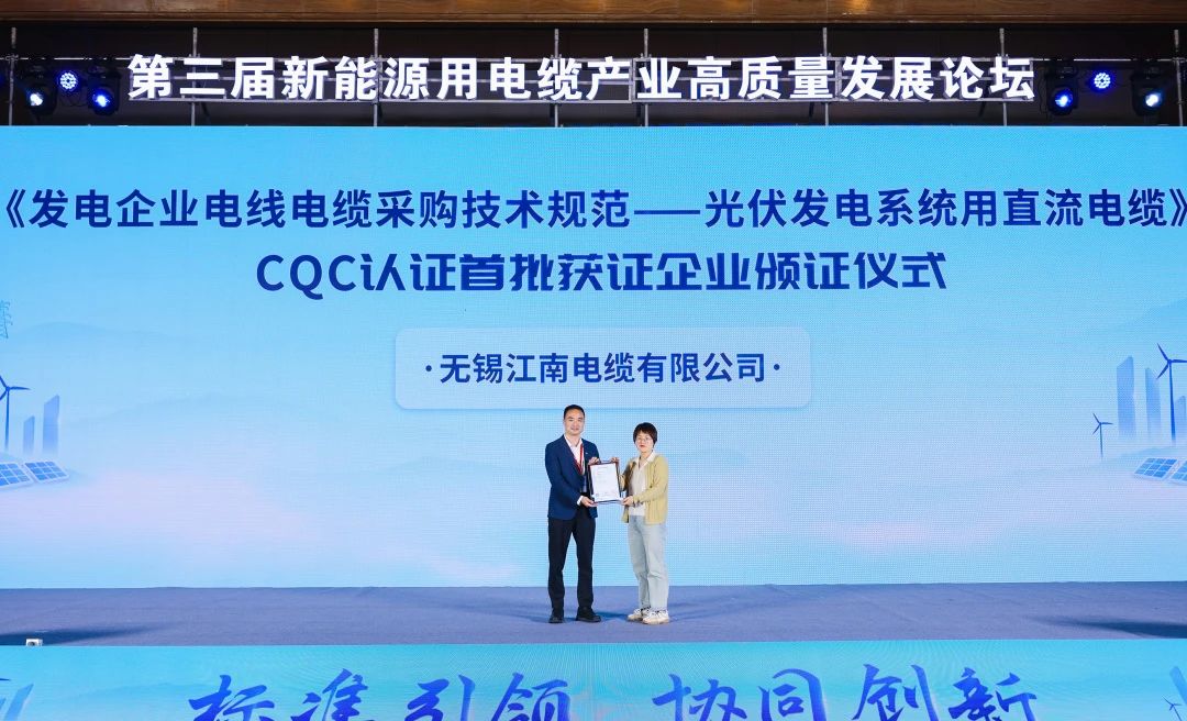 江南電纜這一系列產(chǎn)品已成為標準引領(lǐng)下的新能源電纜典范,首批獲證彰顯了江南電纜在新能源電纜領(lǐng)域的硬核實力,充分發(fā)揮了國內(nèi)相關(guān)標準和檢測認證在新能源產(chǎn)業(yè)質(zhì)量基礎(chǔ)設(shè)施方面的重要作用。