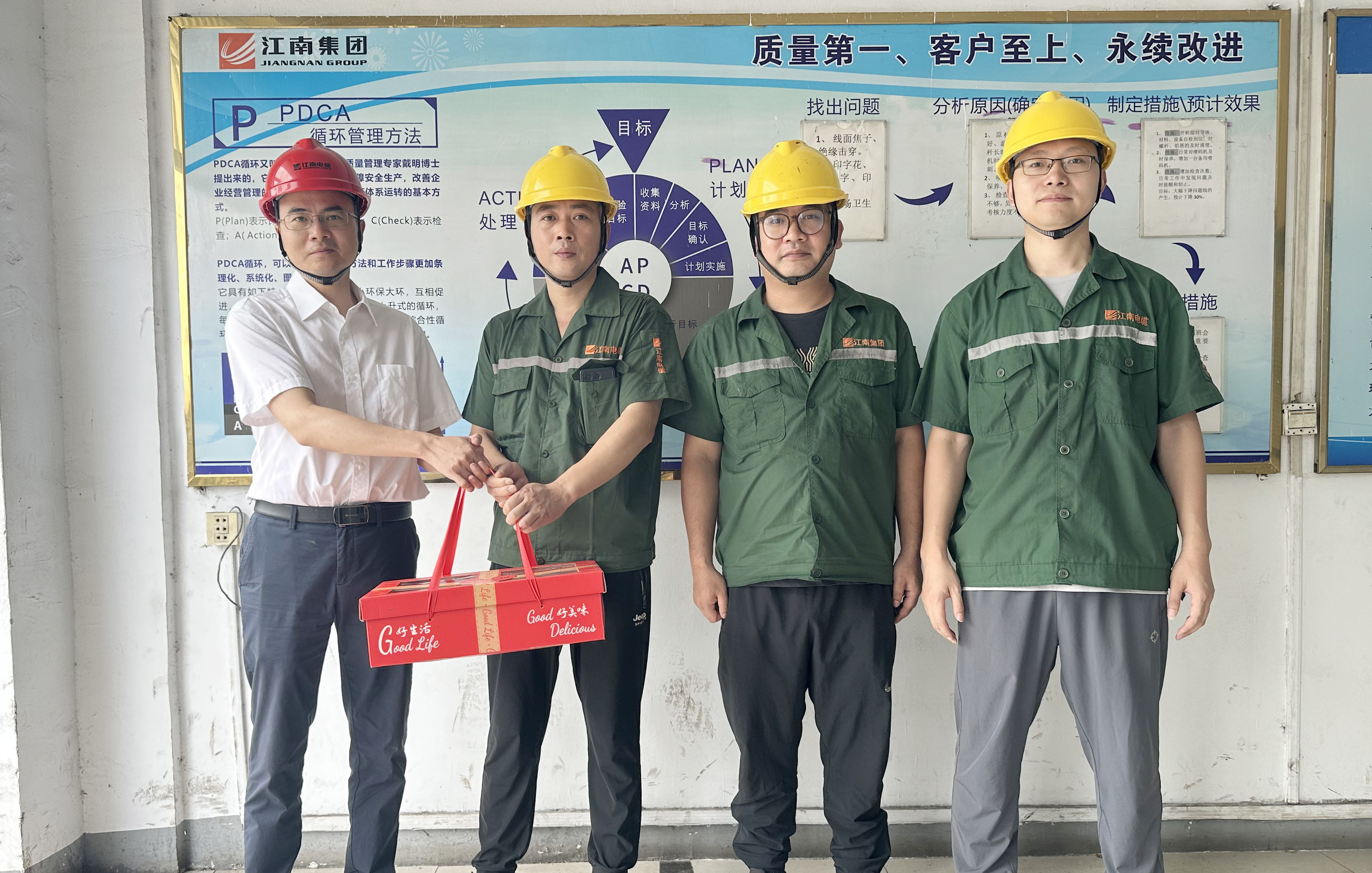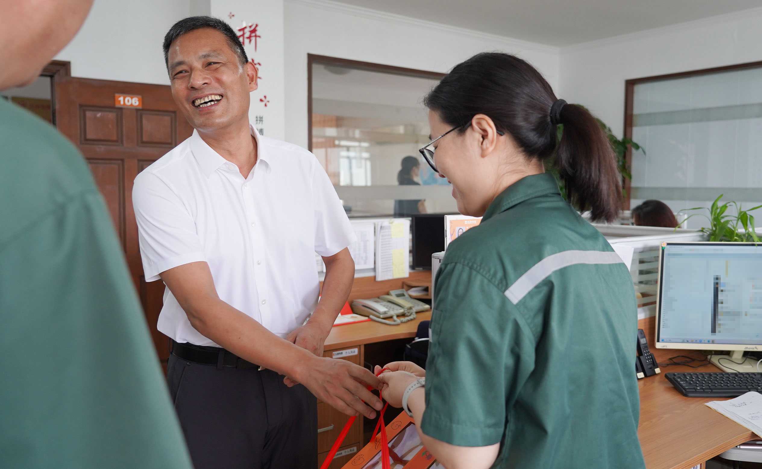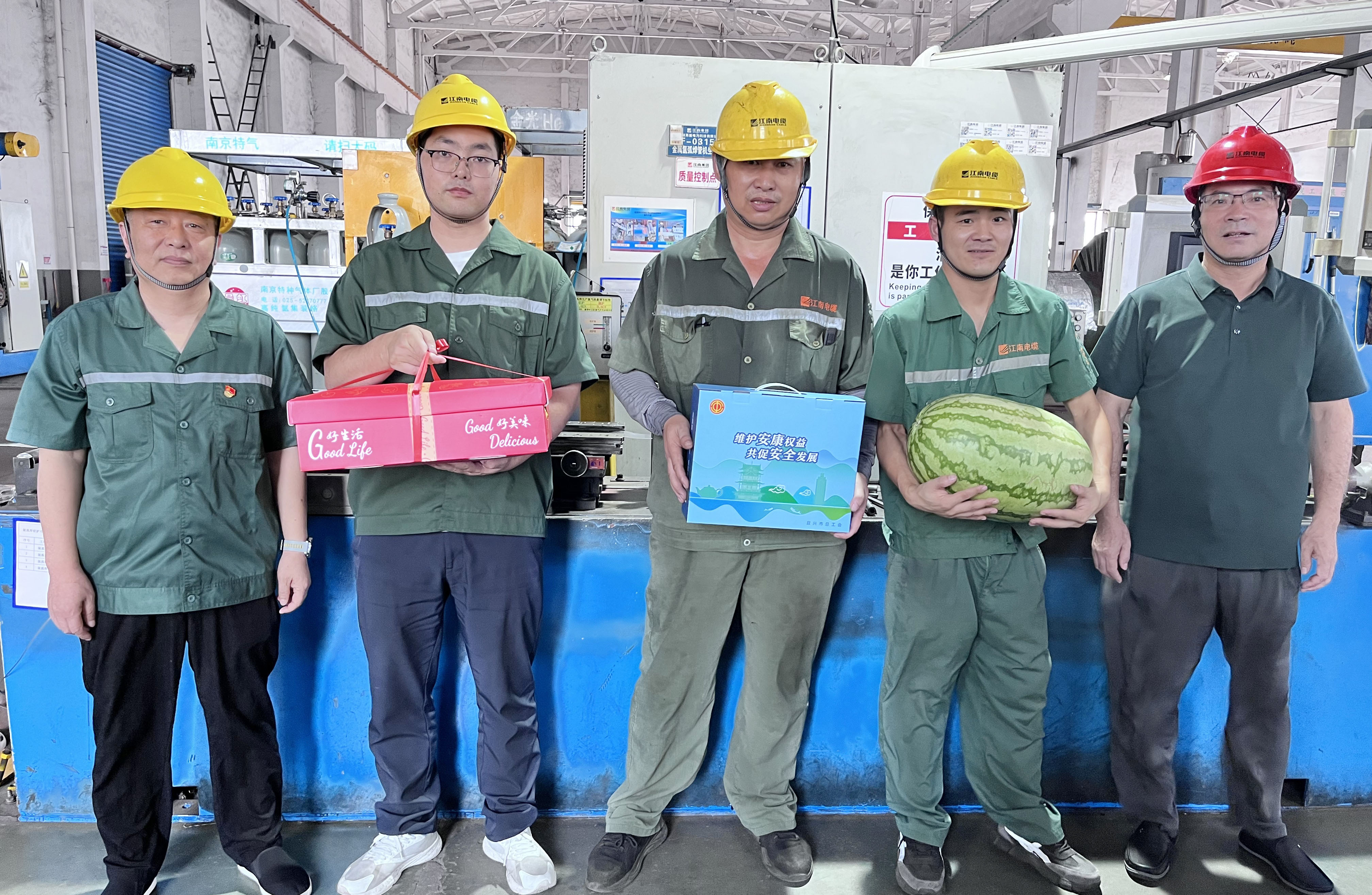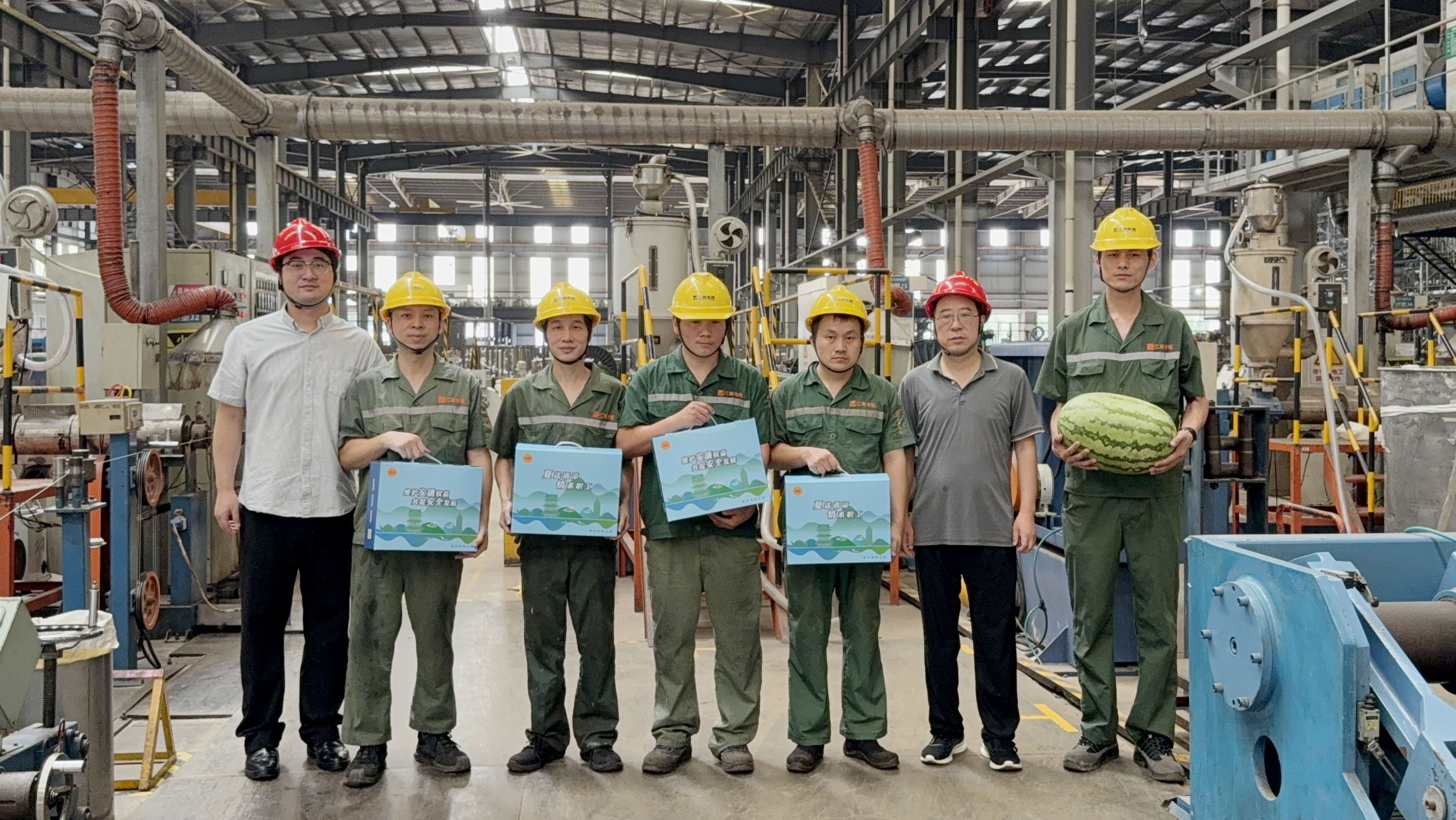 夏日炎炎,暑氣蒸騰。為切實做好高溫時節(jié)安全生產(chǎn)和員工關愛工作,近日,公司董事長儲輝、運營總經(jīng)理蔣君西帶領領導班子成員深入車間一線與后勤部門,開展“情系員工 夏送清涼”慰問活動,為不畏酷暑、堅守崗位、辛勤奉獻的員工送上關懷與問候。