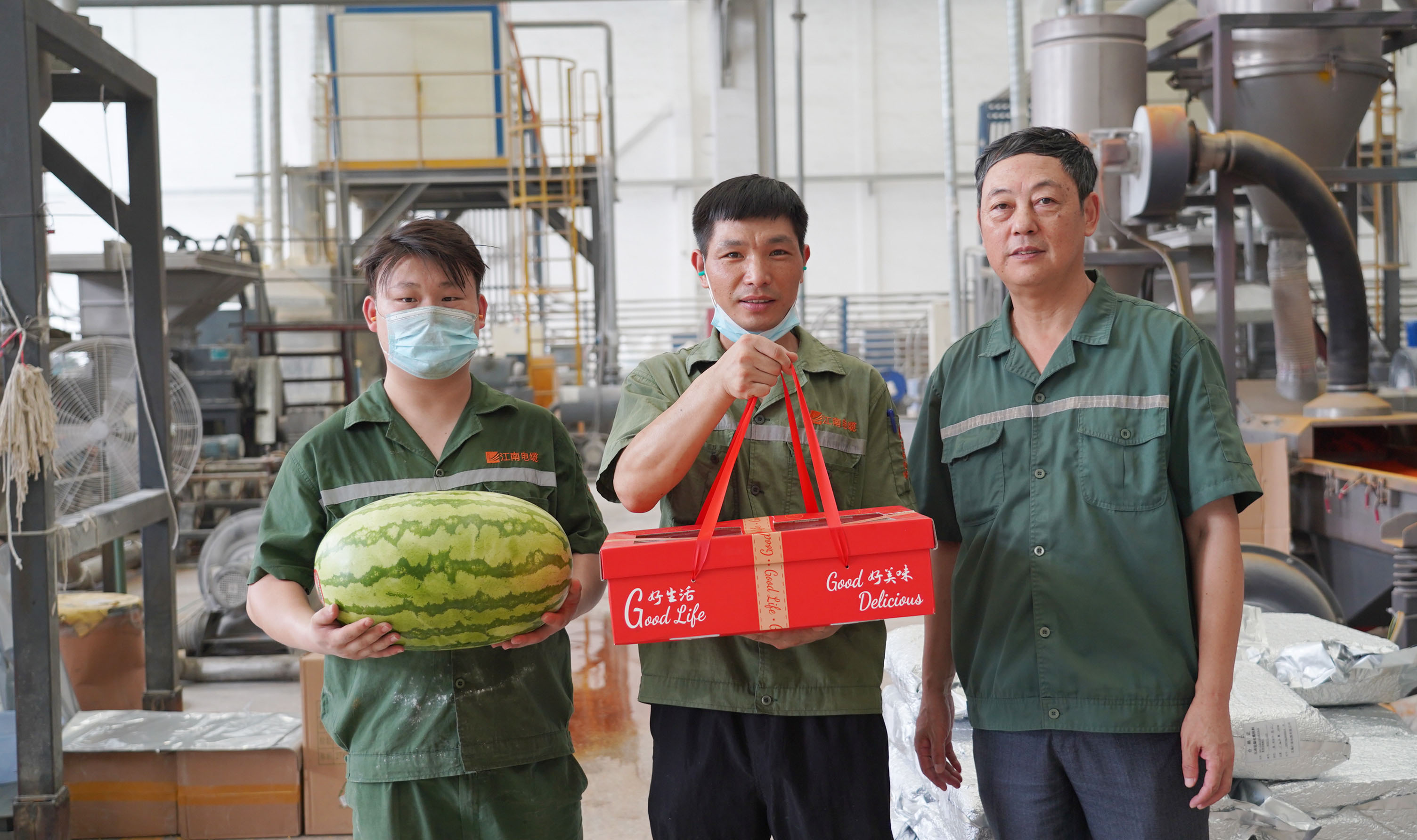 慰問期間,公司領導與員工們親切交流,送上防暑降溫物資,認真詢問員工的生產(chǎn)工作安排和生活保障情況,對一線員工戰(zhàn)高溫、斗酷暑、保生產(chǎn)的辛勤付出表示感謝,并叮囑大家務必注意勞逸結合,做好防暑降溫工作。