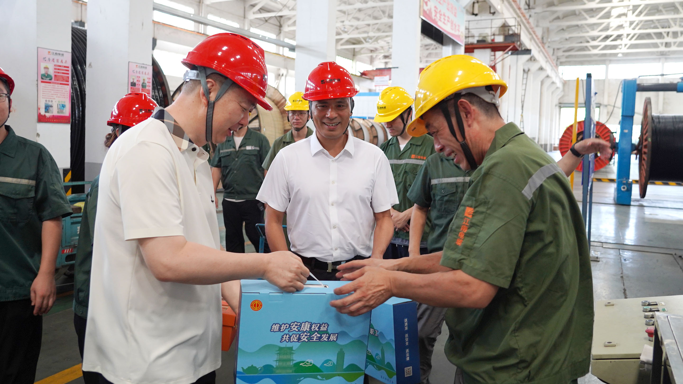 副總經(jīng)理韓偉、副總經(jīng)理史明強赴防火鋁線電纜分廠七車間送清涼