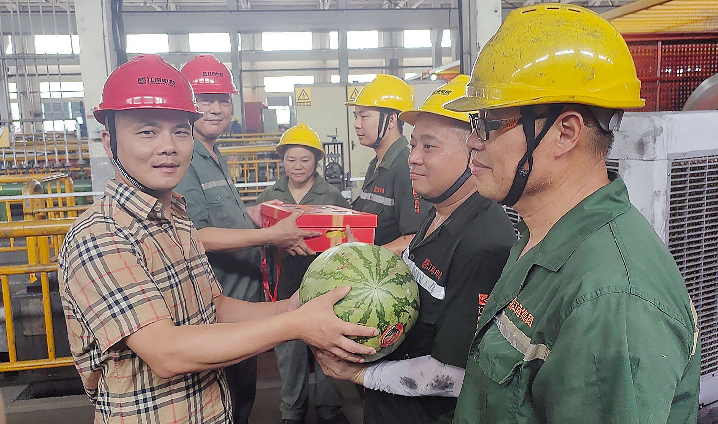 集團副董事長蔣永衛(wèi)、副總經(jīng)理董錦赴低壓電纜分廠、營銷中心送清涼