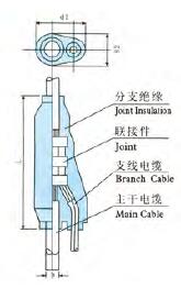 預(yù)制分支電纜的聯(lián)接體部分是采用專(zhuān)用PVC或合成材料制成的如右圖所示的分支電纜聯(lián)接體